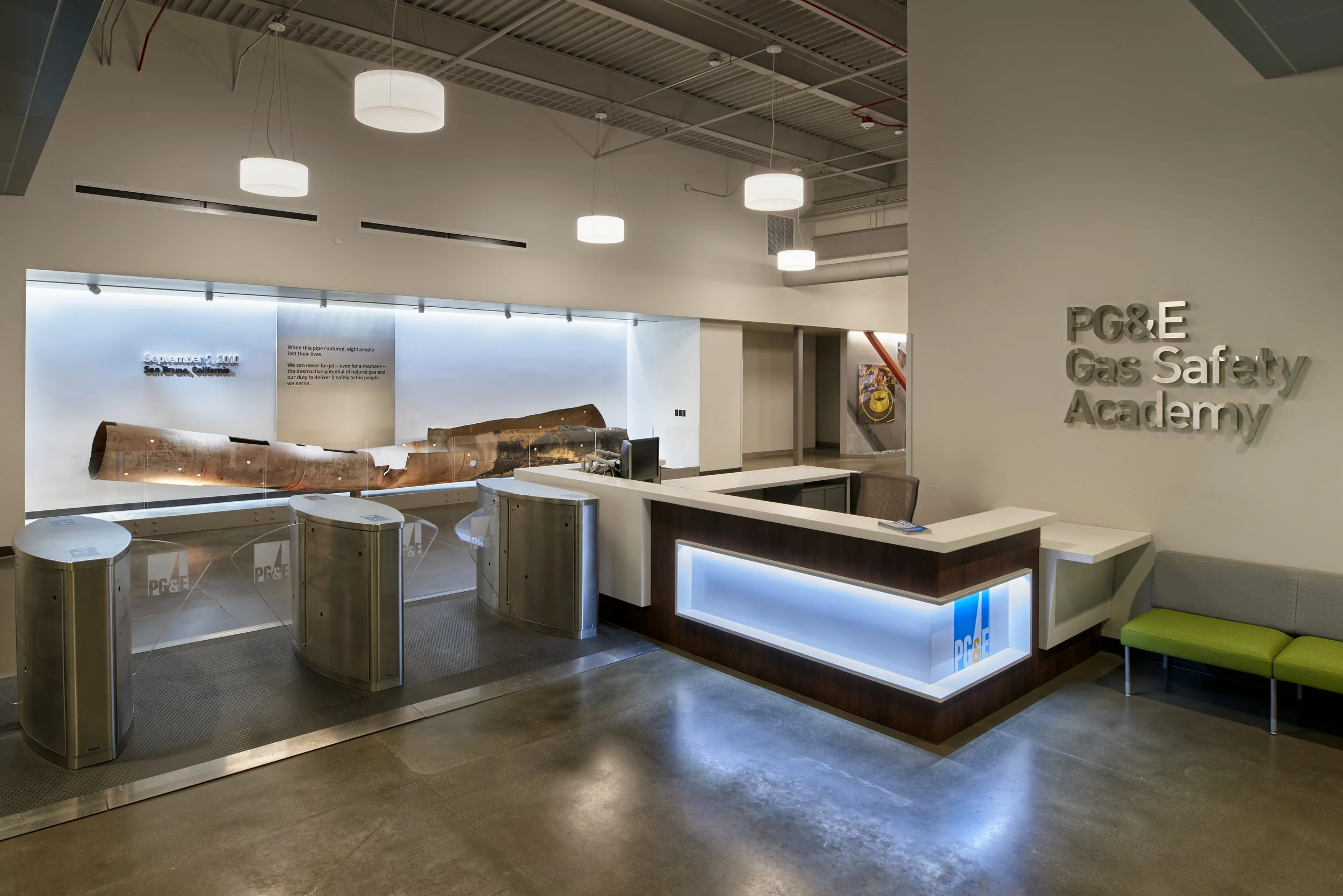 PG&E’s Gas Safety Academy lobby centers around a powerful narrative element, transforming a real-world artifact into an immersive, educational experience. Our lighting design brings this story to life, using light as both a visual and emotional driver.